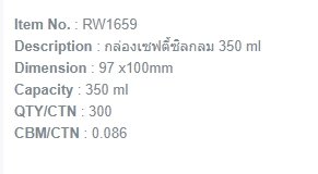 คุณสมบัติ -เป็นพลาสติก food grade สามารถใช้บรรจุอาหารได้ -ฝากล็อคเซฟตี้ซิล ล็อคแน่น ไม่หลุด ข้อควรระวัง -หากต้องการทำความสะอาดก่อนนำไปบรรจุอาหารควรทำความสะอาดด้วยน้ำยาล้างภาชนะทั่วไป -ไม่ควรฉีดพ่นด้วยสเปรย์แอลกอฮอล์