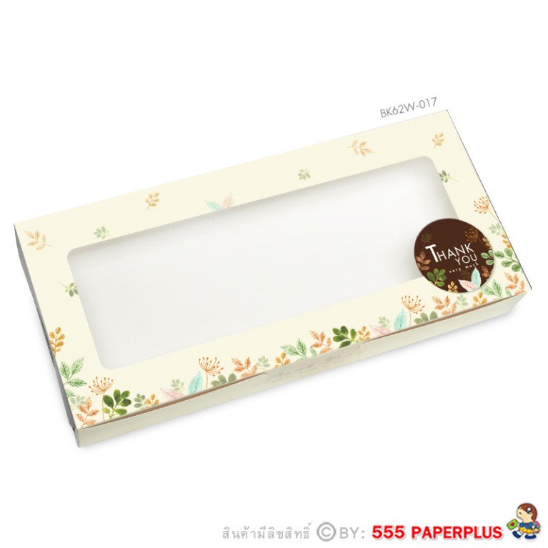 BK62W-017 กล่องบราวนี่ 6 ชิ้น ลายใบไม้หลากสีพื้นครีม 5 ชิ้น (ยกแพ็ค20ชิ้น)